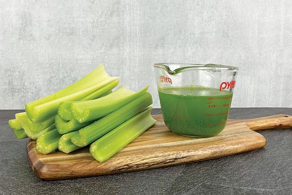 12 celery stalks (each 6 inches long) = over 1 cup celery juice