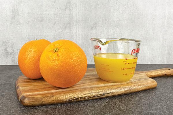 2 large oranges (peeled) = a little over 1 cup of orange juice.