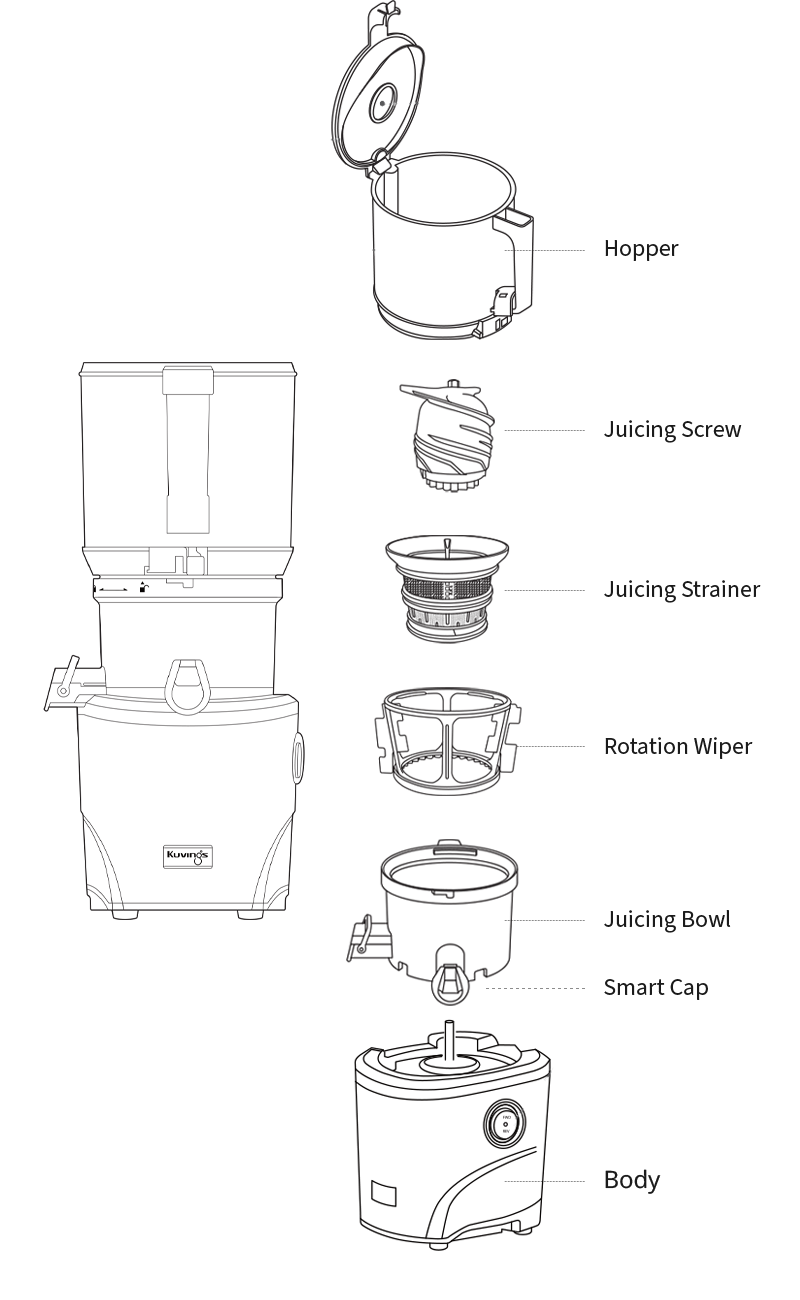 Auto cutting, upgraded screw for silky juice, and a smart cutting technique for easier juicing and no clogging.