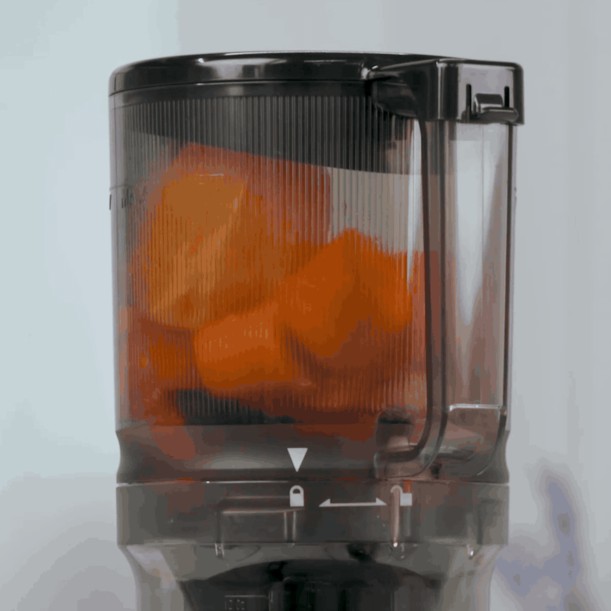 The spiral auger then quickly feeds them into the juicing chamber, ensuring smooth and efficient extraction.