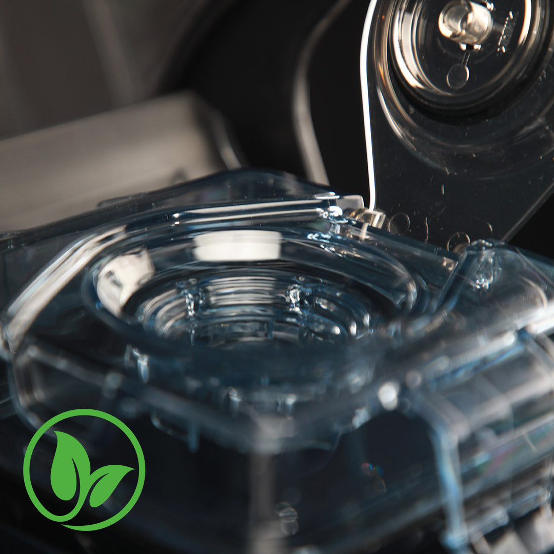 The integrated soundproof hood effectively reduces noise – perfect for open counters, hotels and cafes.