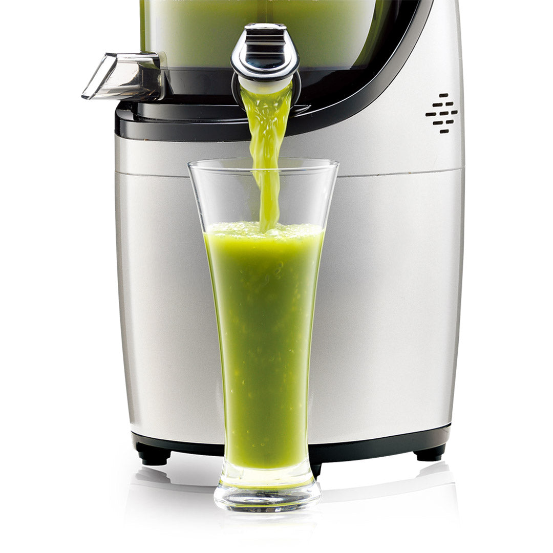 This wide feed chute decreases extracting time, preserves the natural tastes of ingredients, and minimizes nutrition loss during the juicing process.