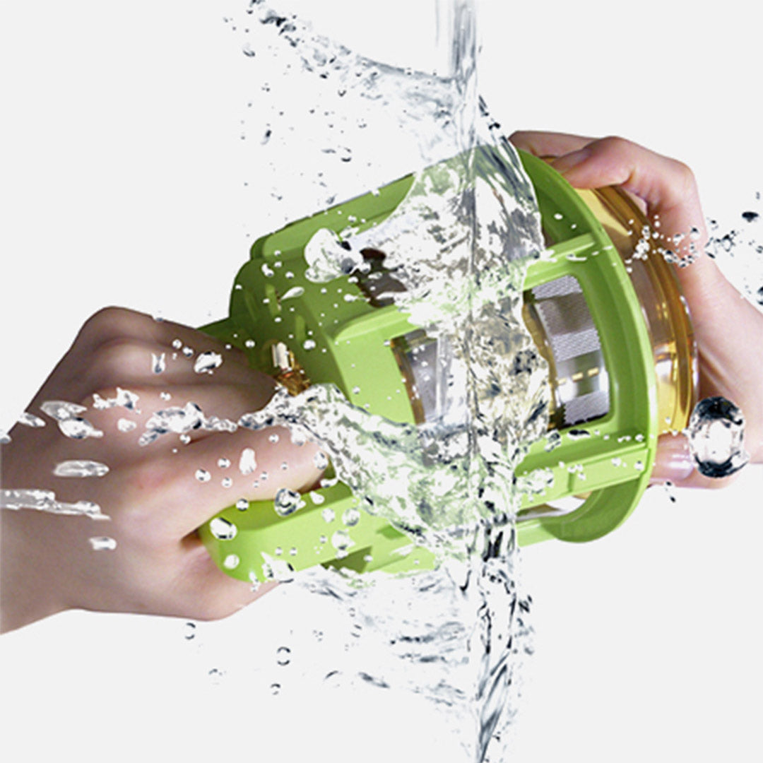 Quick and hassle-free cleanup with smart juice cap and rotating cleaning brush.