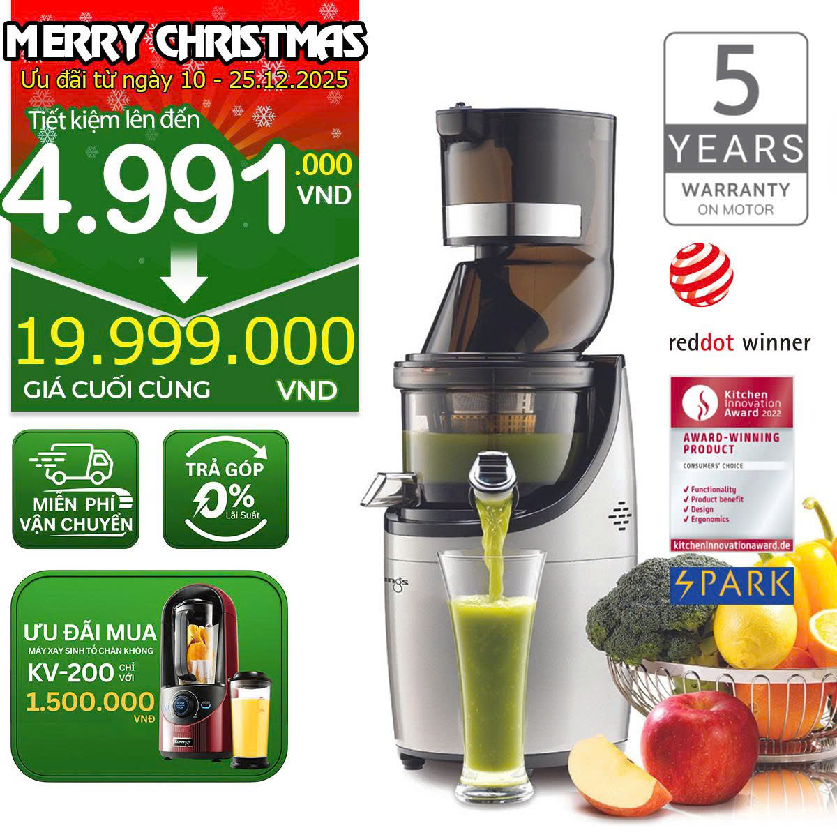 Extracts maximum juice and nutrients while minimizing oxidation. (J.M.C.S.)