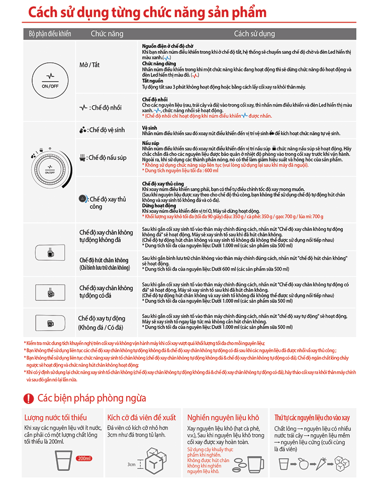 | Max Use | Mixer : 1min 10sec / Soup : 6min 30sec |