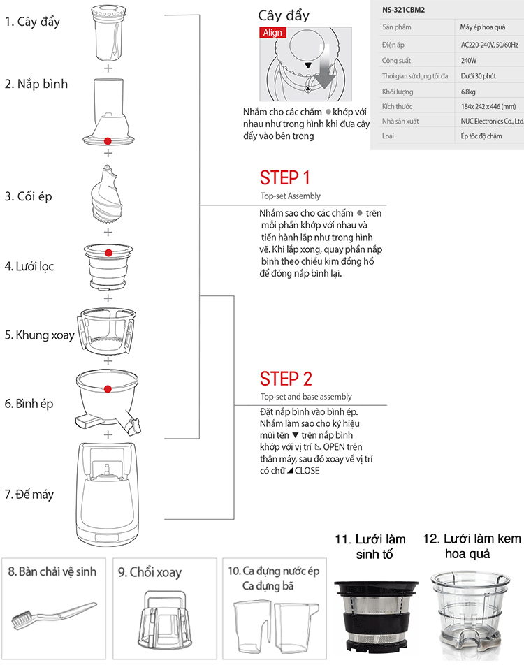 Các bộ phận sản phẩm máy ép chậm Kuvings NS-321CBM2 [B3000]