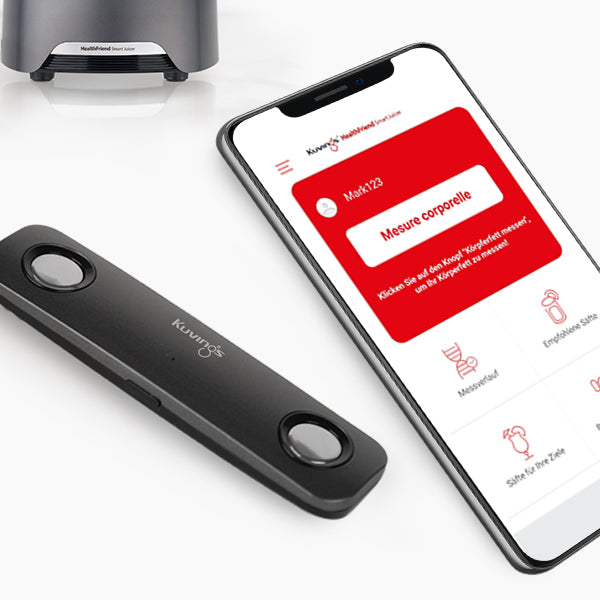 Lưu ý: Máy phân tích thành phần cơ thể tương thích với tất cả các mẫu máy ép trái cây Kuvings nhưng không hỗ trợ các tính năng thông minh IoT.