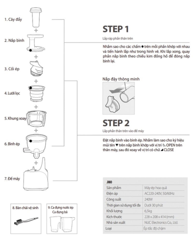 Hệ thống khóa kép yêu cầu thân máy, hộp ép và nắp phải được lắp ráp đúng cách thì máy ép chậm mới hoạt động.