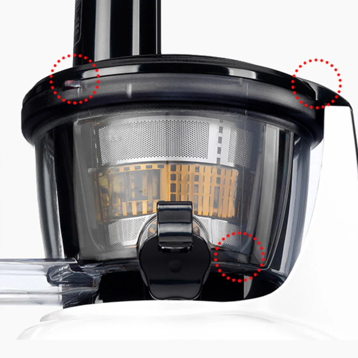 Nắp thông minh ngăn rò rỉ khi rót nước trái cây vào ly. Nó giúp hòa trộn khi bạn ép từ hai loại nguyên liệu với nhau để tạo ra loại nước trái cây tùy chỉnh phong phú và đa dạng hơn.