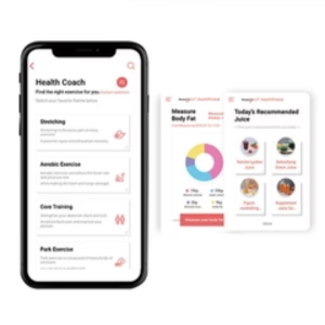 Bằng cách sử dụng máy phân tích thành phần cơ thể được lắp trong máy ép trái cây, bạn có thể đo 7 loại thành phần trong cơ thể mình. (khối lượng mỡ cơ thể, tỷ lệ mỡ cơ thể, khối lượng cơ, nước cơ thể, khoáng chất, chỉ số khối cơ thể (BMI) và tỷ lệ trao đổi chất cơ bản (BMR)).