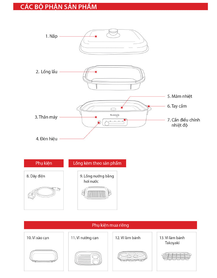 Các bộ phận lẩu nướng điện Kuvings KMG-200B