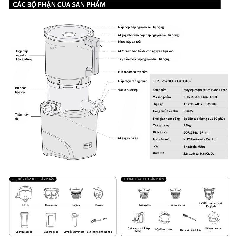 Các bộ phận máy ép chậm KHS-2520CB [AUTO10]