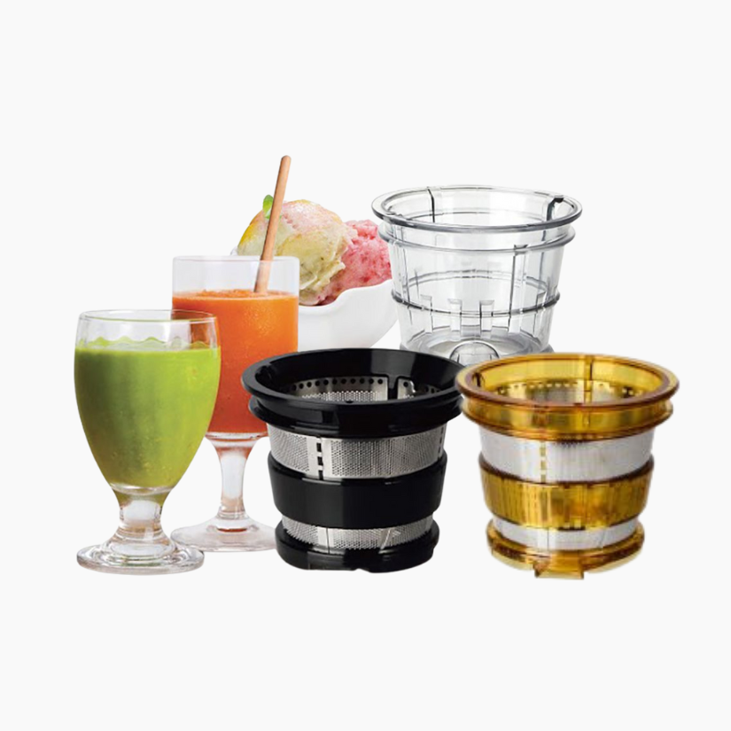 Không chỉ làm nước ép, máy còn đi kèm lưới làm kem và lưới làm sinh tố, tiện lợi khi gia đình bạn có trẻ nhỏ.