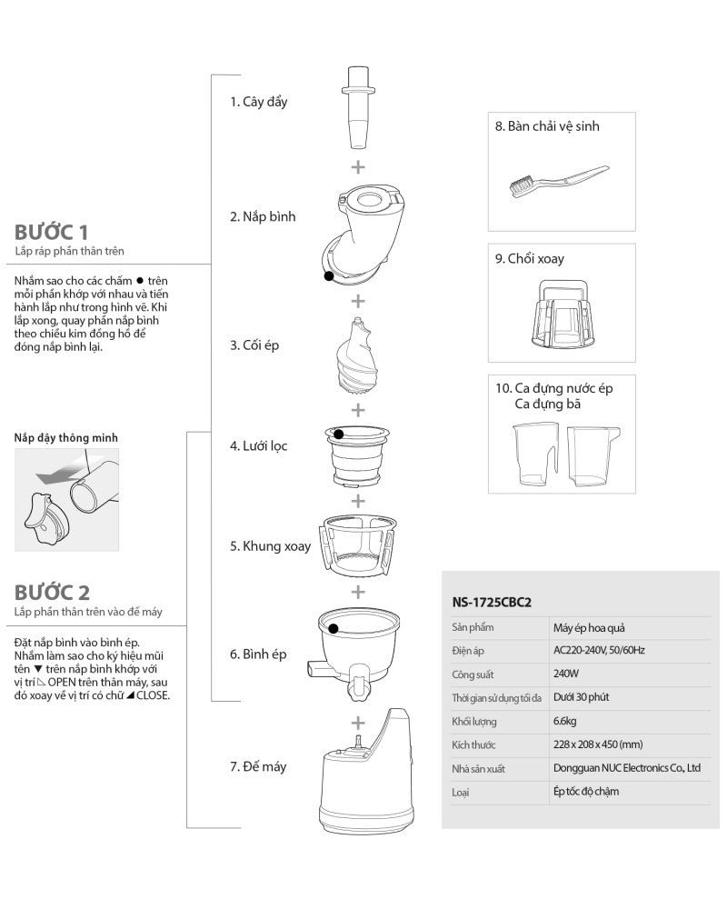 Cácbộ phận máy ép chậm nguyên trái NS-1725CBC2 [B7200]