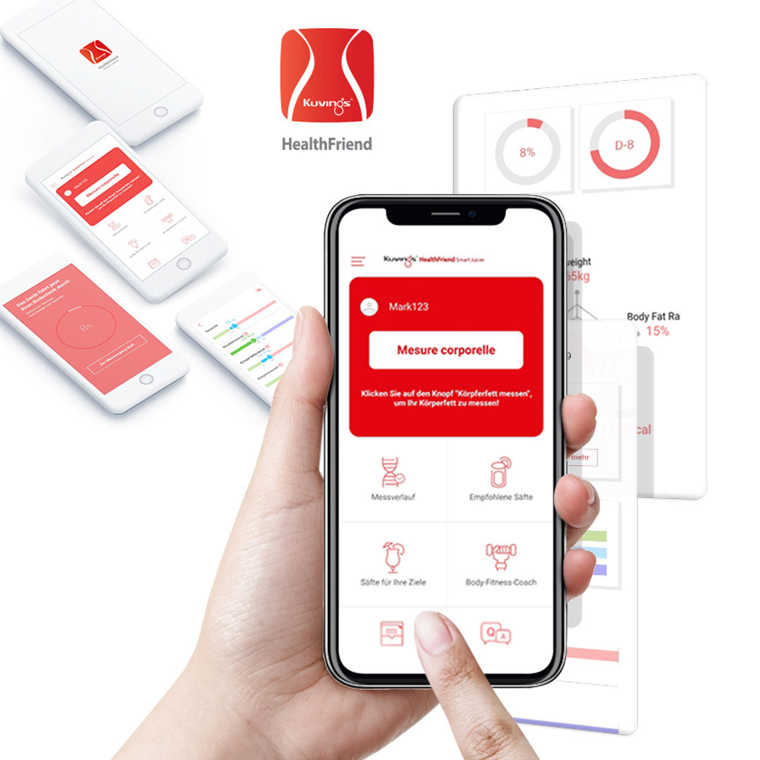 Lưu ý: Máy phân tích thành phần cơ thể tương thích với tất cả các mẫu máy ép trái cây Kuvings nhưng không hỗ trợ các tính năng thông minh IoT.